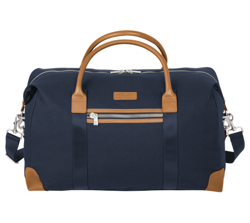 12-ounce cotton canvas with DWR finish duffel, 12.5″h x 20.5″l x 10.5″d, Approx. 2,583 cu. in., Zippered main compartment, front pocket and interior pocket