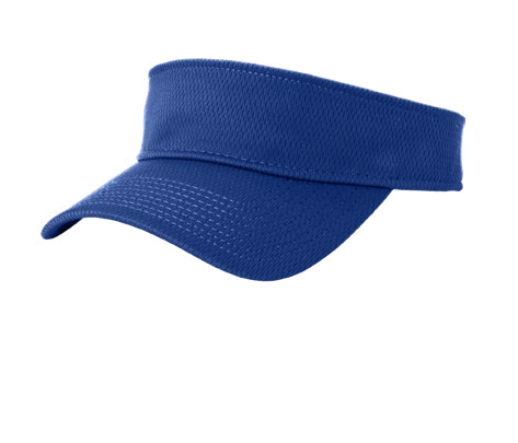 100% polyester visor with curved bill. Hook and loop closure with clear plastic pull tab. Available in 5 colors.
